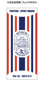 ひたちシーサイドマラソンでは、出走特典として、大会当日に出走されたランナーにタオルを配布します。 完走後のフィニッシュゲートにて出走特典を配布する予定です。 途中棄権された方についても、会場に戻られた際にお渡しさせていただきます。